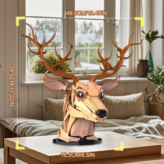 DAHONPA Deer Head Creative Decoration Series Animal Building Blocks Set(1070 PCS)Gift for Adults and Kids, Room Desk Decor or Wall Hanging
