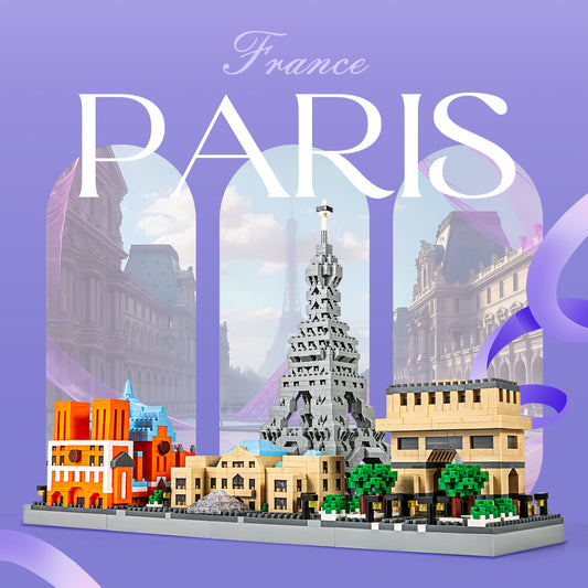 DAHONPA Paris Skyline Architecture Micro Building Blocks Set, 2462 Pieces with Eiffel Tower and The Louvre Building, City Line Collection Model, Gift for Kid and Adult