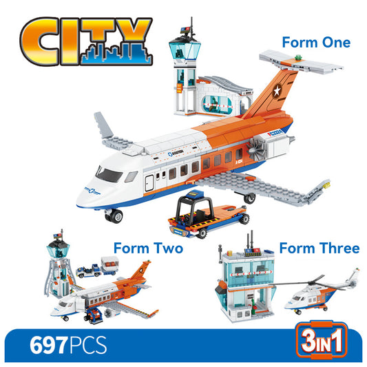 DAHONPA City Passenger Airplane Building Set, 3-in-1 Airport Plane Building Block Toy, Planes Model Toys Gifts for Kids Boys Girls